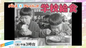 映像によると、当時は大変な食糧難で、給食がなくなるかもしれないという危機に瀕し、学校で「話し合い」が行われたと。先生が壇上から保護者たちに危機を訴え、これを受けて父親の一人が「私たちは“父兄”として全面的に協力します」などと応じています。